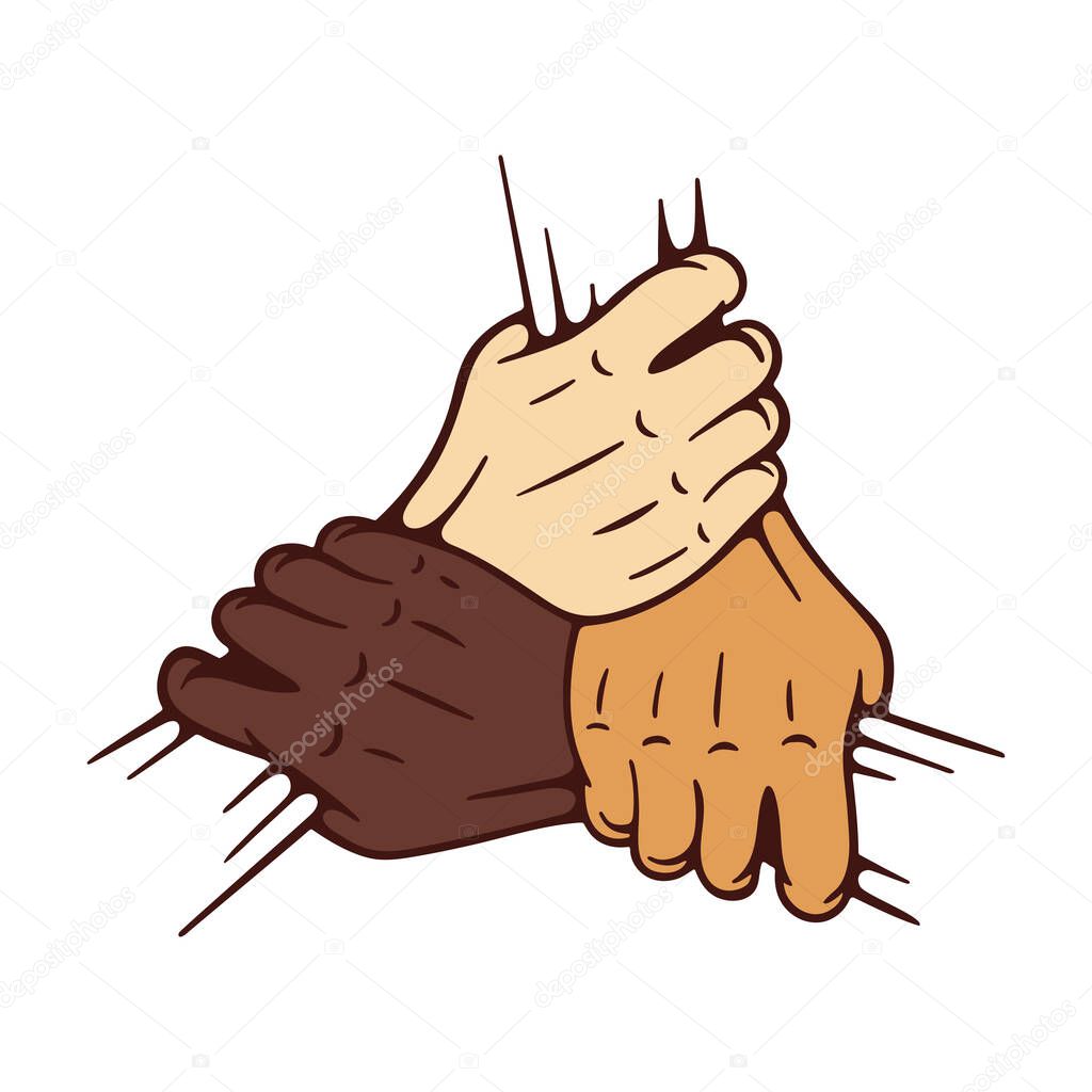 Join Hands Together Three Hands Holding Each Other Isolated On White Background Teamwork Concept Hand Drawing Vector Illustration Part Of Set Premium Vector In Adobe Illustrator Ai Ai Format